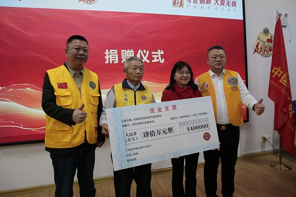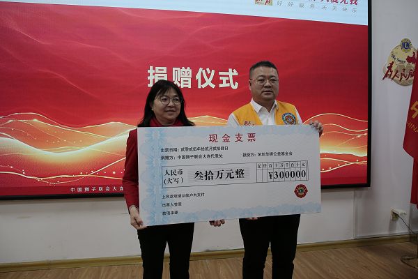 捐赠仪式上,深圳狮子会向中国导盲犬大连培训基地捐赠42.5万元整,深圳华狮公益基金会捐赠40万元整,中国狮子联会大连代表处捐赠30万元整。此次累计112.5万元的善款将专项用于导盲犬的繁育、训练及视力障碍人士的匹配服务。
